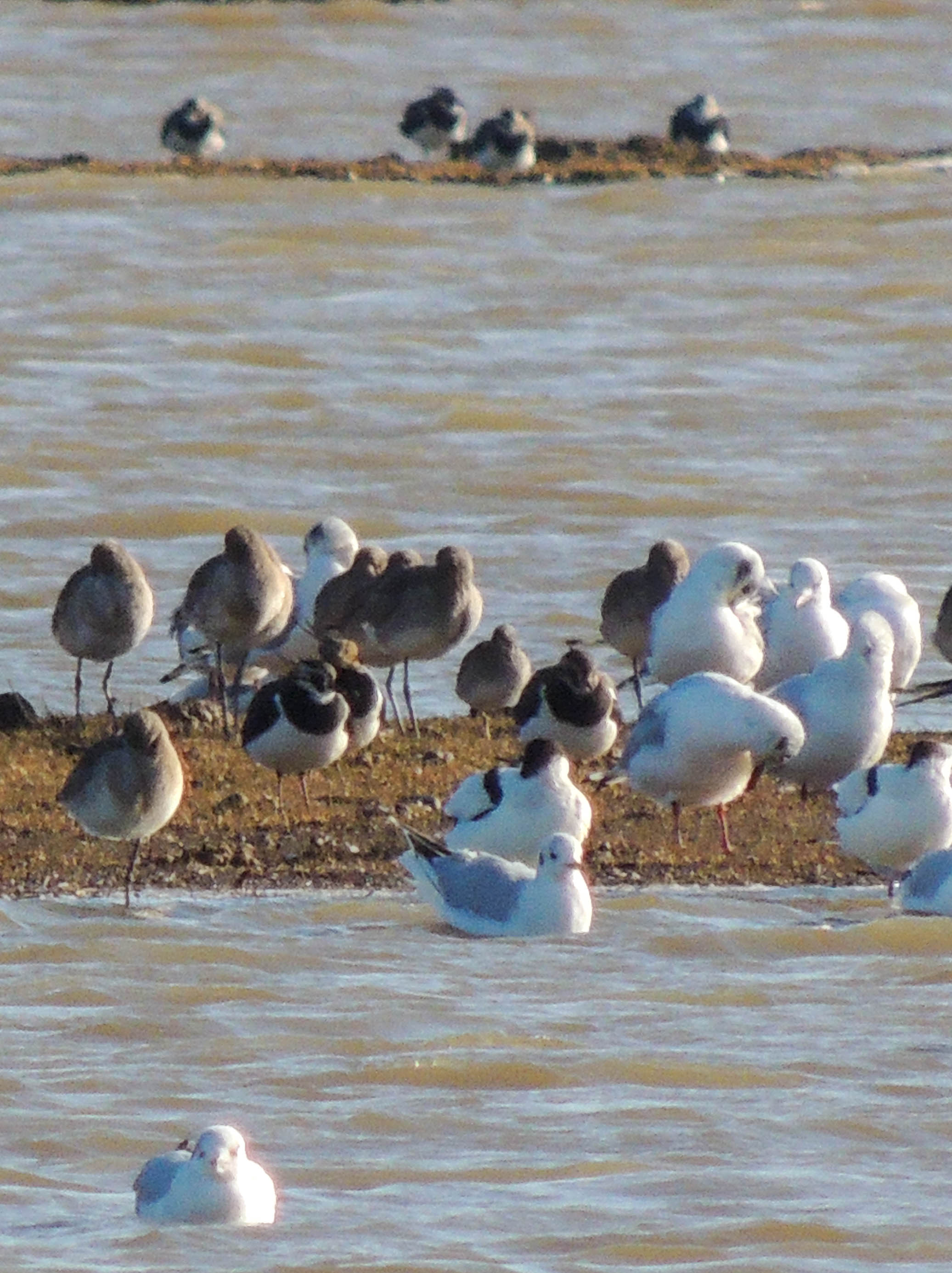 Here the highlight was a Long-billed Dowitcher, a rare visitor from America, which has been wintering with a flock of Black-tailed Godwit. It was unfortunately asleep all the time I was there but although it has similar plumage to the Godwits, the size difference and different leg colour were clearly visible.