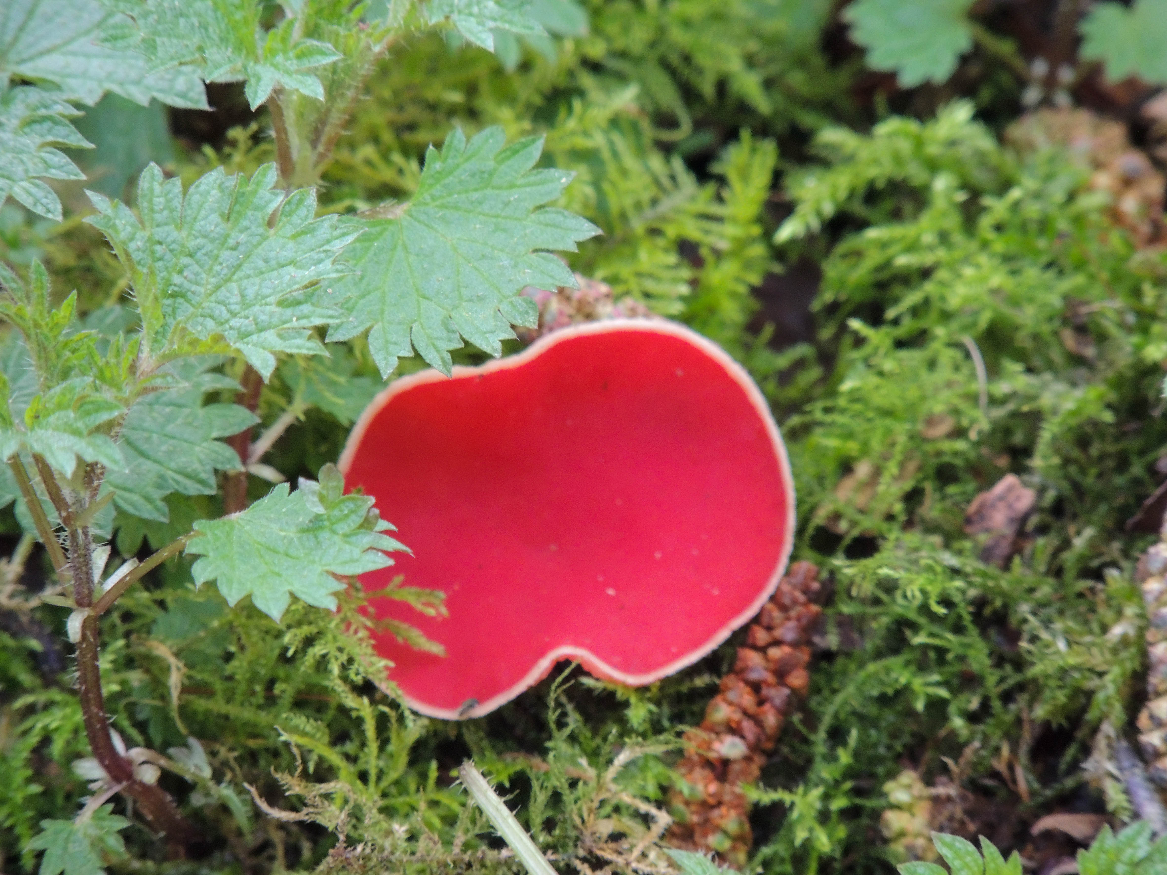 One interesting sighting here was a Scarlet Elf Cap, a bright red fungi, an uncommon species. It was certainly the first time I had seen one. Although it is not poisonous it is inedible.