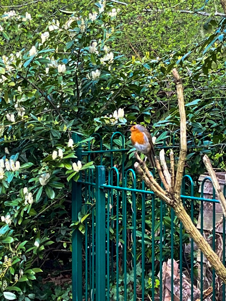 Two male Blackcaps were singing, one at each end of The Tarn and I also heard a Chifchaff, possibly in the wooded area between the Tarn, the golf course and Tarnwood Park (not accessible). I did encounter a very friendly Robin, who allowed me to get closer and closer to take his photo on my phone and only flew off when I walked away.