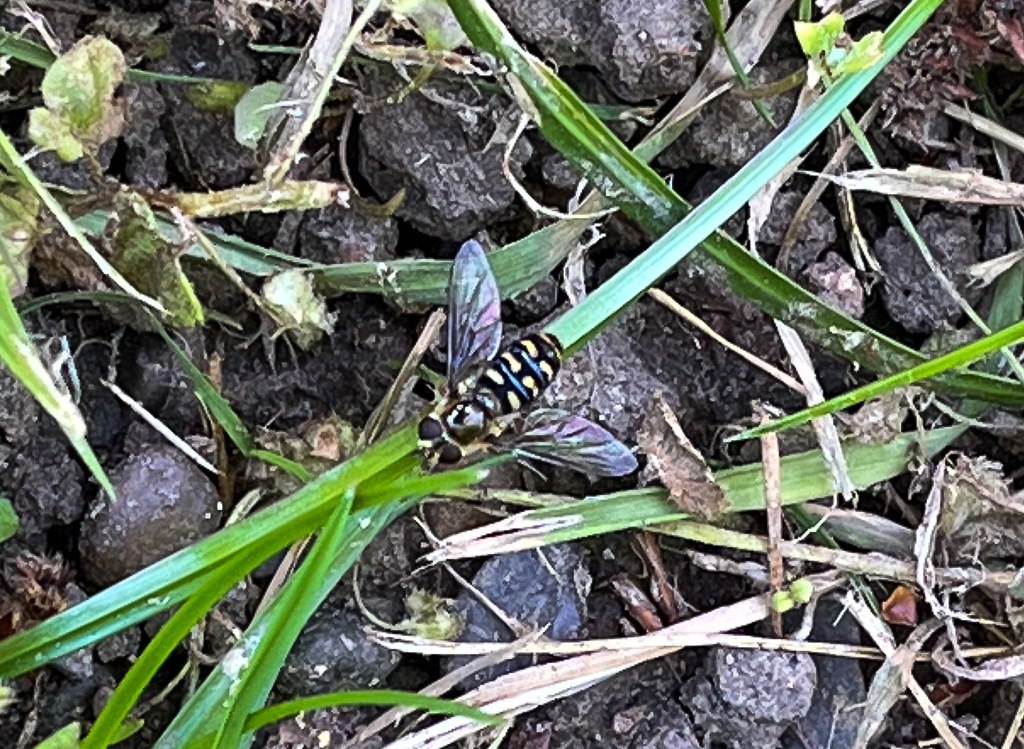 A bright sunny morning for my weekly recording walk around the local patch. Despite the bright sunshine, there is still a bite in the air, so I am not hopeful of much insect activity this morning. A few flies in the borders of the gardens and a Black-tailed Aphid Eater (Eupeodes luniger) in the rough grass at the golf course end. I am a novice at the identification of Hoverflies, but found this species in the same spot last week and had it confirmed by one of the experts.