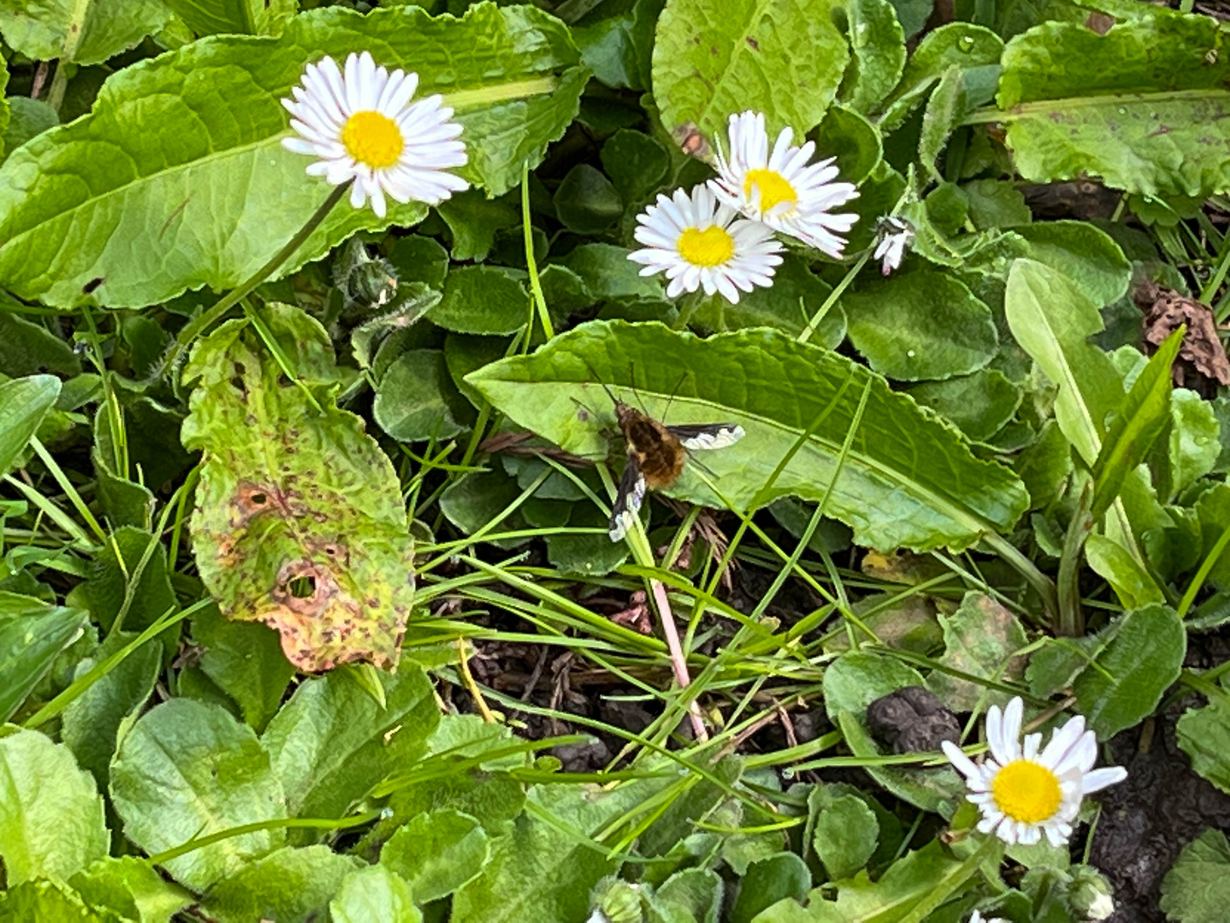 Also nearby, a couple of one of my favourite insects, the Dark-edged Bee-fly.