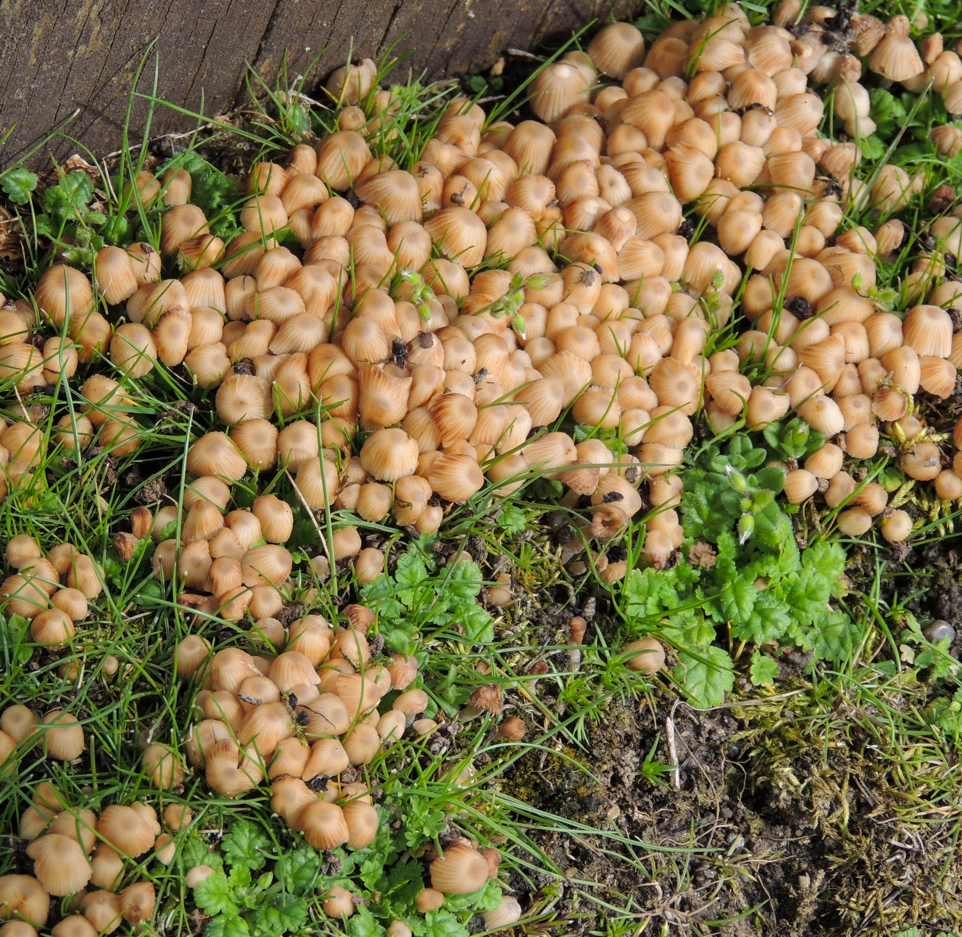 Under the seats at the viewpoint, we found this interesting-looking fungus, which I believe is a Coprinaceae fungus commonly known as a brittlestem, a type of inkcap.