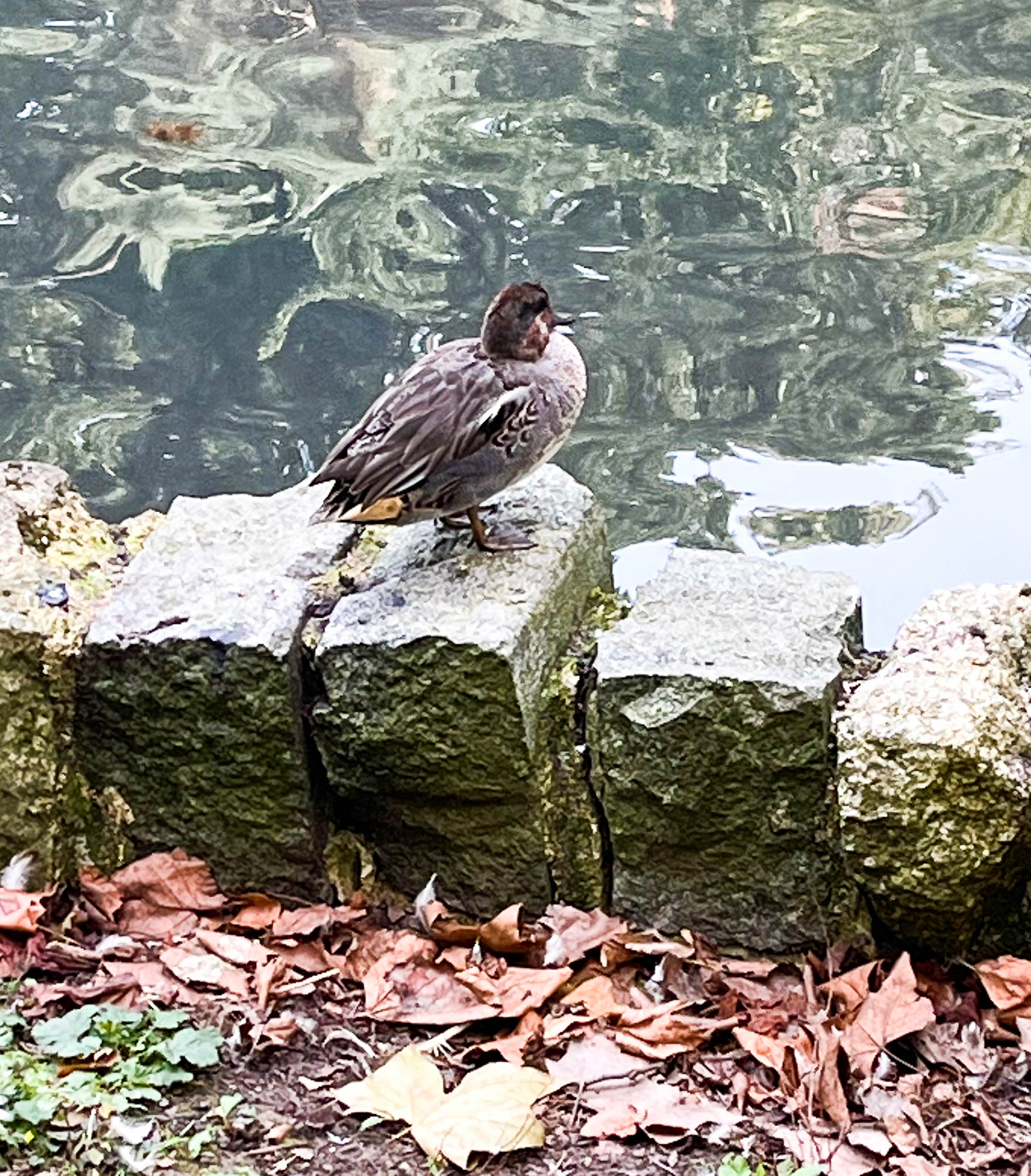 Elsewhere there was a drake Teal on the Tarn. I wonder if this is the same one as spent last winter here as like that one, this one associates with Mallards.