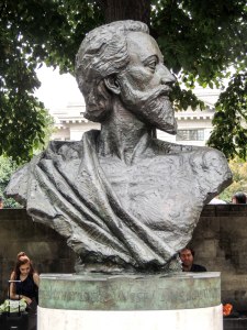 John Donne, a poet, writer and cleric, was born in London in January 1572 as the middle of 6 children into a Roman Catholic family, at a time when the practice of the Roman rite was outlawed in England. At 11 he attended Hart Hall (now Hertford College) in Oxford and at 14 entered Cambridge University. He completed his studies but did not graduate as he was unwilling to take the oath of supremacy. Following Cambridge, he entered the Inns of court in London. In 1593 his brother Henry was arrested for hiding a Roman Catholic priest and whilst in prison contracted bubonic plague and died. His death seems to have had a profound effect on John regarding his Roman Catholic beliefs. In 1597 John was appointed as secretary to Sir Thomas Egerton, Lord Keeper of the Great Seal. During this time he met and fell in love with Anne More, Sir Thomas’ niece and in 1601 they wed in secret as both Sir Thomas and Anne’s father opposed the wedding. John found himself briefly in Fleet prison and although he was released after a short while, his career was in ruins. During this time, he scraped a living as a lawyer and a writer of poetry and anti-catholic pamphlets. Anne and John were reconciled with her family in 1609 and the following year he acquired a patron in Sir Robert Drury, who gave them a house in Drury Lane. In 1615, at the suggestion of James I, he was ordained priest in the Church of England and was appointed a Royal Chaplain. He finally received a degree from Cambridge University. However, in 1617 Anne died, having borne John 12 children in 16 years of marriage. In 1621 he was appointed Dean of St Paul’s Cathedral, a position he held until his death in 1631. He had become famous for his preaching and his poetry and hymn writing. He was buried in St Pual’s and a memorial was set up in the churchyard. This survived the Great Fire of 1666, unlike the Cathedral. but was moved inside once the new St Pauls was finished. In 2012 this bust of John Donne by Nigel Boonham was unveiled in the churchyard.