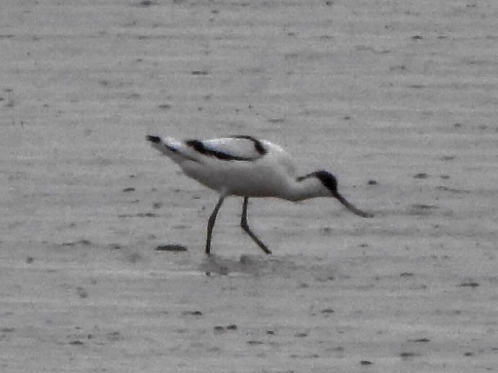 In the distance, on the mud beyond the entrance channel, we could see 3 waders on the mud beyond. These turned out to be an Avocet and 2 Redshanks. This was the first time we had seen an Avocet on this part of the river.