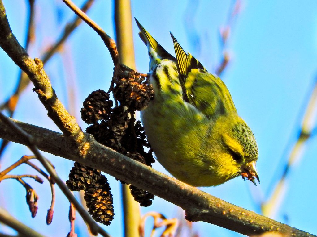 We started off in Dulverton hide on the main lake, which is one of the regular spots for seeing them, in the reed bed directly opposite, but we were not lucky and after about 40 minutes decided to move on. A male Stonechat was some small consolation. As we were making our way to the feeder station, we became aware of a flock of Siskin feeding in the alders and got some excellent views of both males and females as they fed.