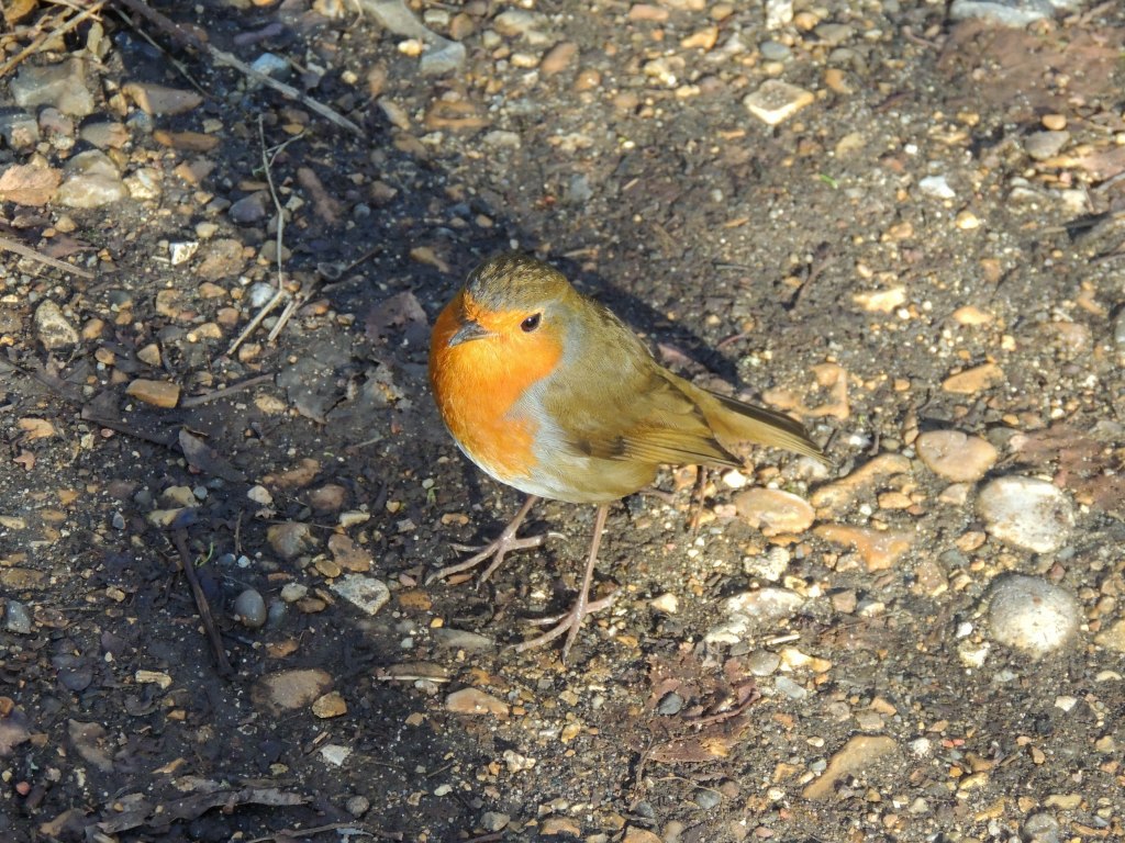 We made our way to the Scrape Hide via the secluded walk. We had brief views of a Green Woodpecker and were joined by a very inquisitive Robin.