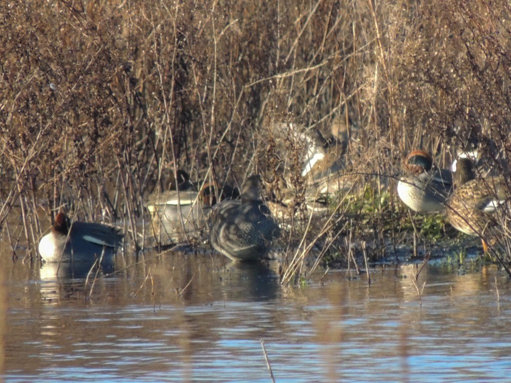 Reaching the Tower hide, we hoped we might see a Bittern in flight across the reed beds, but again we had no luck. I had a brief glimpse of a female Goldeneye as it flew from one lake to another and could see the Wigeon feeding on the marsh.