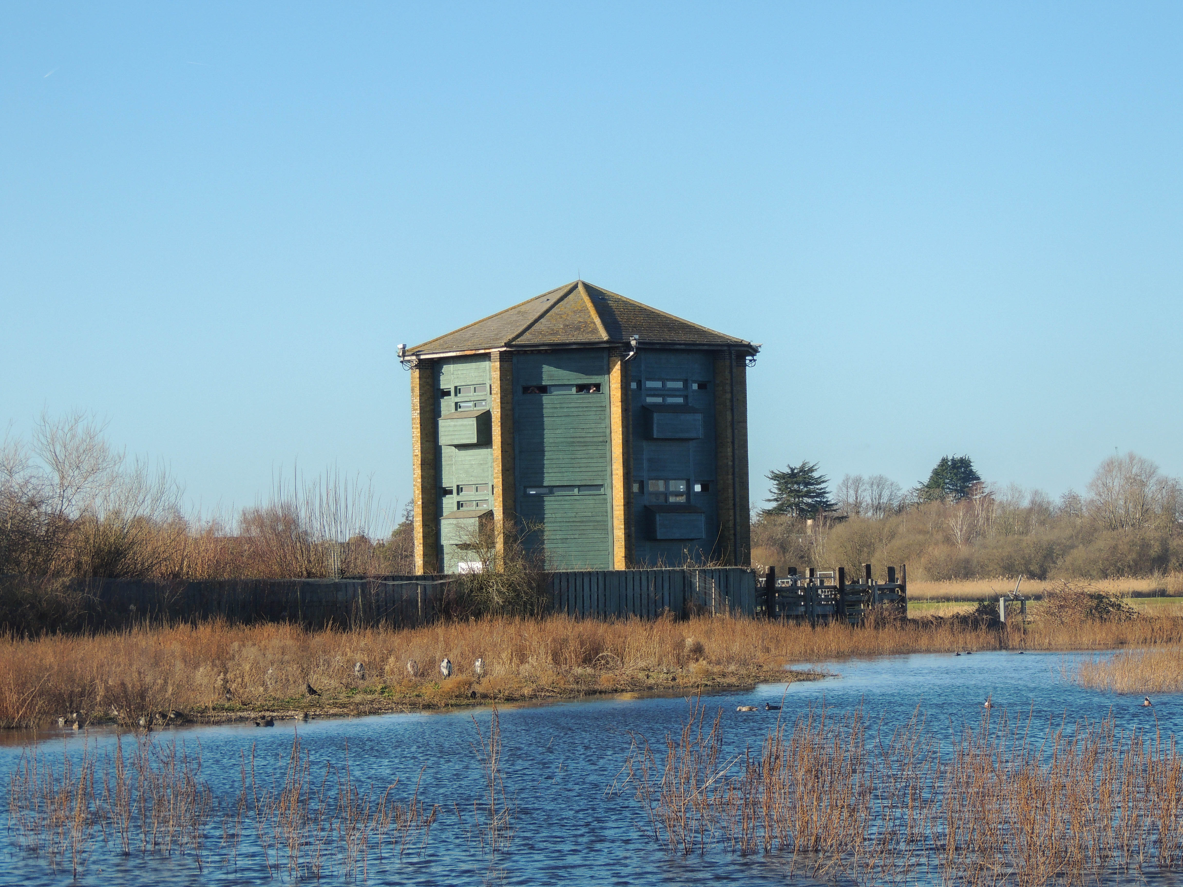 Reaching the Tower hide, we hoped we might see a Bittern in flight across the reed beds, but again we had no luck. I had a brief glimpse of a female Goldeneye as it flew from one lake to another and could see the Wigeon feeding on the marsh.