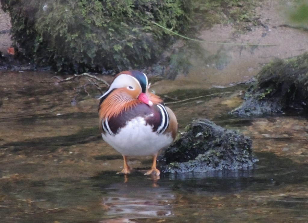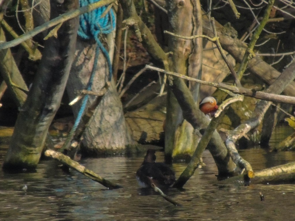 I was beginning to think I would be out of luck when I spotted a drake Mandarin Duck skulking in the vegetation on the other side of the Long Water. In fact, there were 3 males and a female that showed themselves eventually.