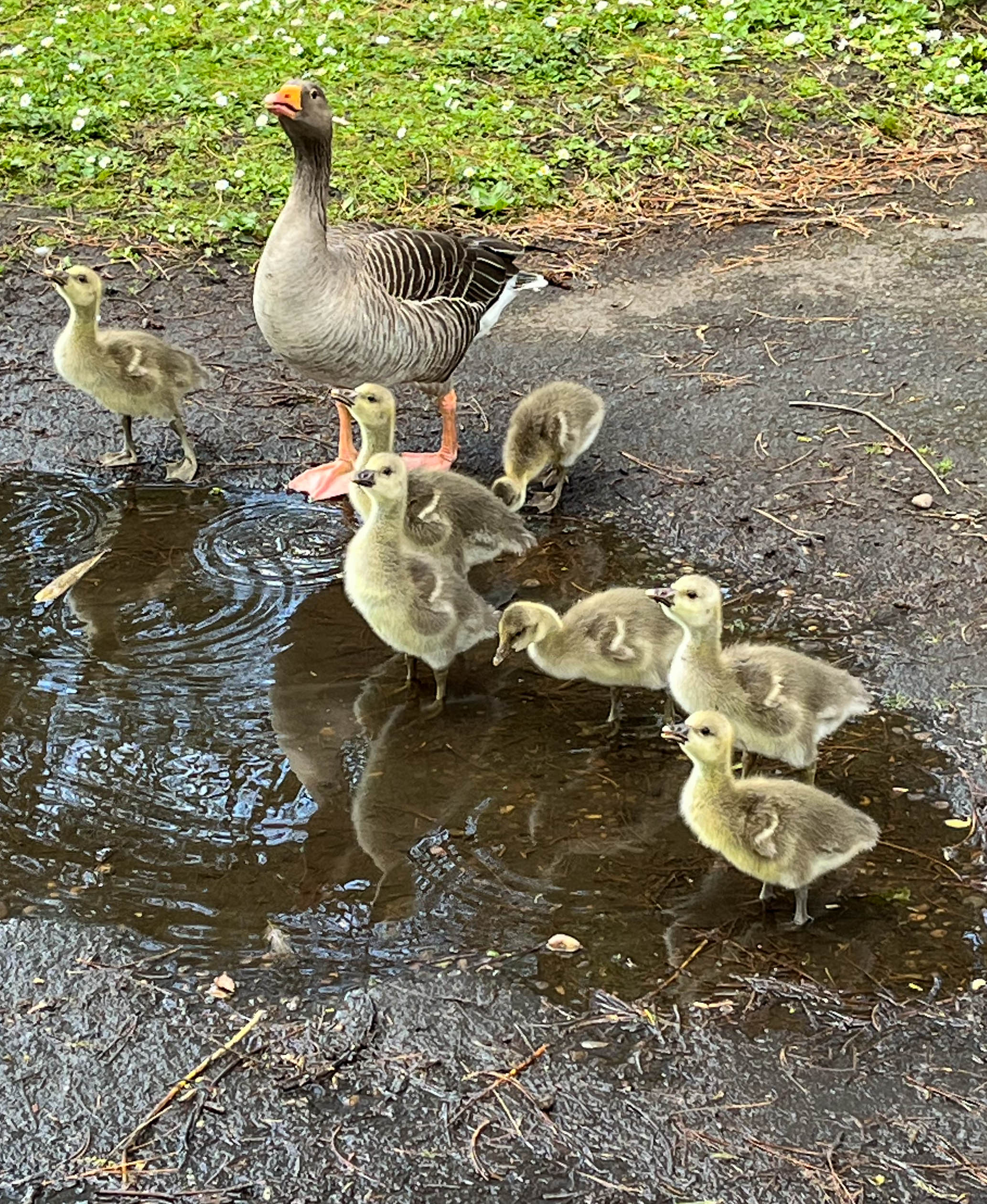 By the Tarn, the Bluebells were in full bloom and the family of Greylag Geese are getting bigger.