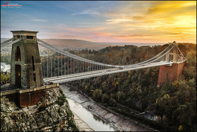 Recovering from his injuries, Brunel submitted plans for a bridge to cross the Avon Gorge at Clifton in Bristol and his design won. Work started in 1831, but the project was soon hampered by lack of investment and work was not recommenced until 1862 (3 years after Brunel’s death) and finally finished two years later.