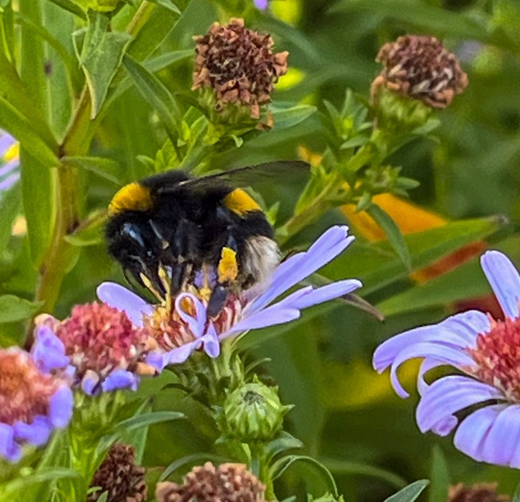 The biggest surprise was a juvenile Moorhen in the gardens. Although only a few hundred yards from the Tarn, they do not normally venture far from the water. More amazingly it was standing on top of a hedge! They are good climbers and can frequently be seen climbing amongst water side trees and bushes. It took off as soon as it saw me, heading back in the direction of the Tarn. Apart from the Moorhen there was little wildlife activity in the gardens except for a single Small White Butterfly, a group of Common Carder Bees, a couple of Buff-tailed Bumblebees and a single Honey Bee.