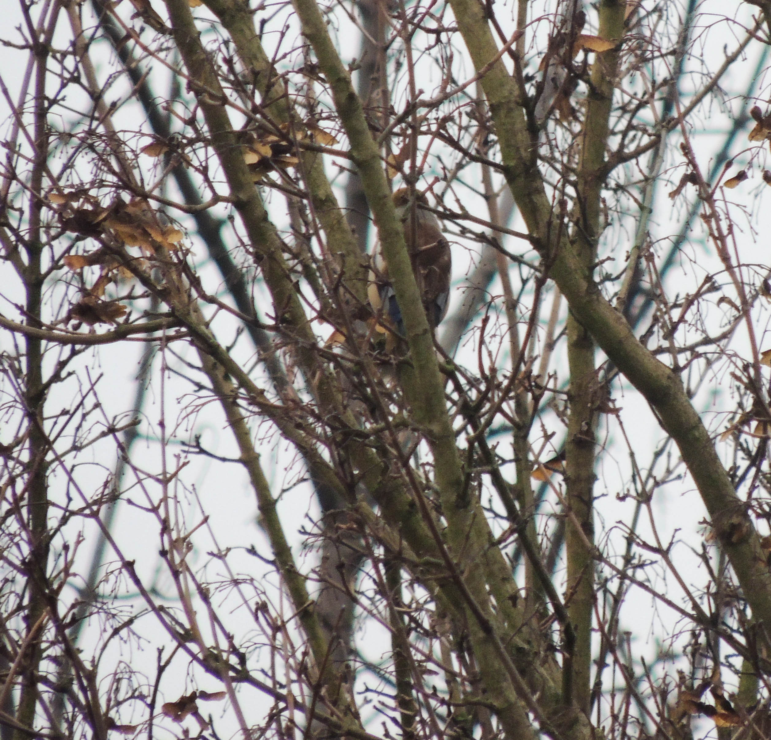 Pressing on we could see a small flock of birds in the tree tops in the gorge and stopped to see what they were. We had identified Blue and Great Tits, when Keith said ‘I have got a Hawfinch!’. Hawfinch, the largest of our finches, are usually restricted to specific areas of woodland and certainly not what you would expect in a park by the river estuary. It took me a minute or so to get onto it, concealed in a tree, but eventually got a good view. we watched and photographed it for about 10 minutes before it flew off down the gorge. We spent a while trying to relocate it, unsuccessfully, before heading off for the estuary.