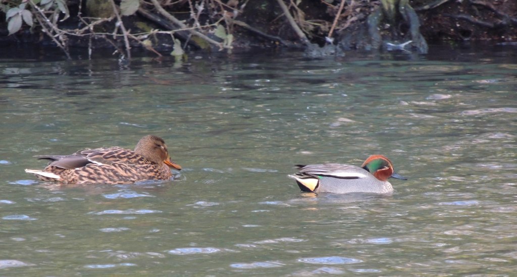 The usual resident wildfowl were present. The Coots are beginning to occupy their nest sites from last year and the drake Teal was back keeping company with a female Mallard.