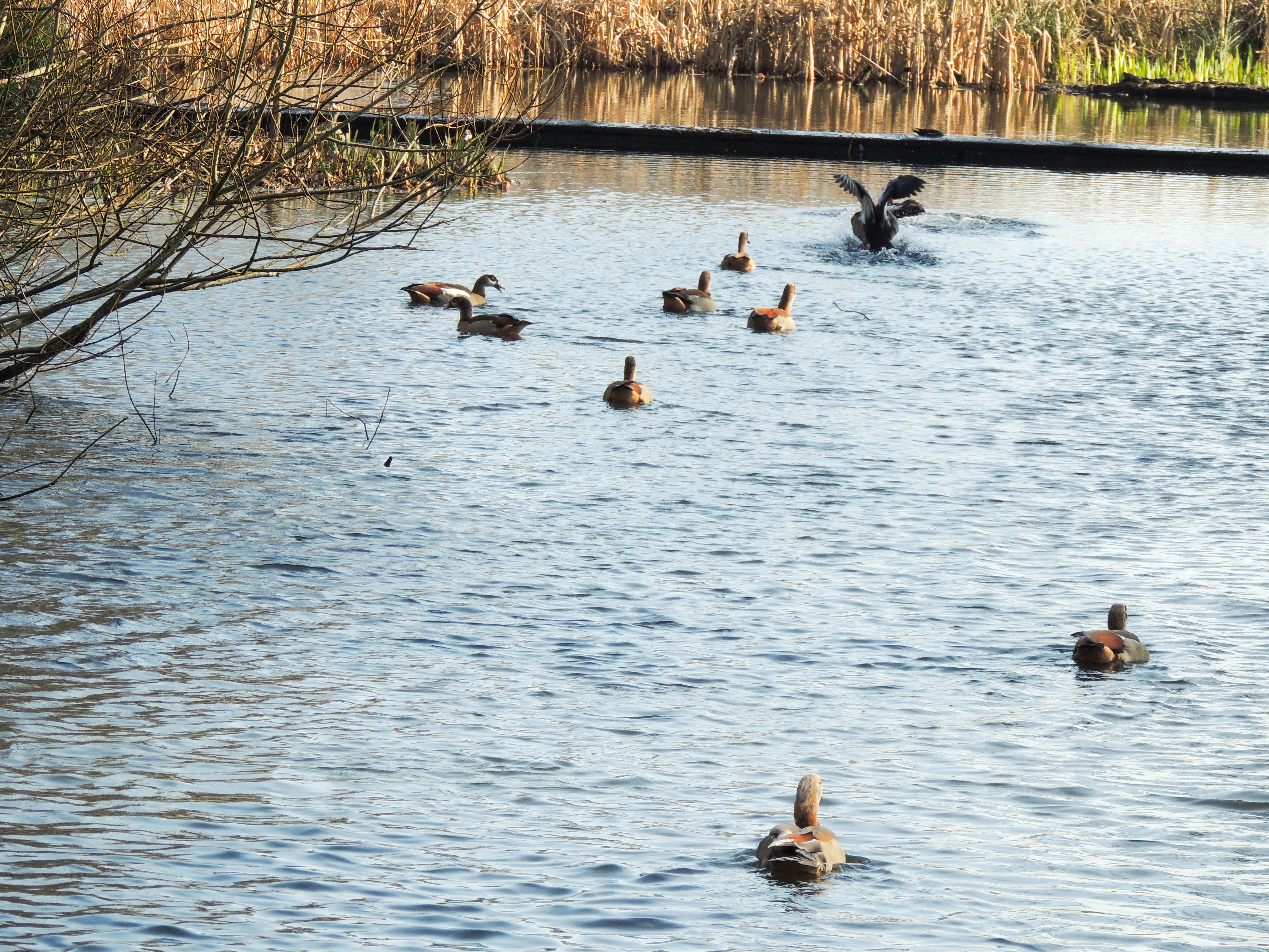 Spring is finally on its way! How can I tell? Well the geese on the Tarn this week were kicking up a right rumpus as pairs fought and argues over the best nesting spots available. The Tarn normally has a couple of pairs each of Canada Geese, Greylag Geese and Egyptian Geese, but on my most recent visit, there were 14 Greylags, 12 Canadas and 20 Egyptian Geese (a site record number).