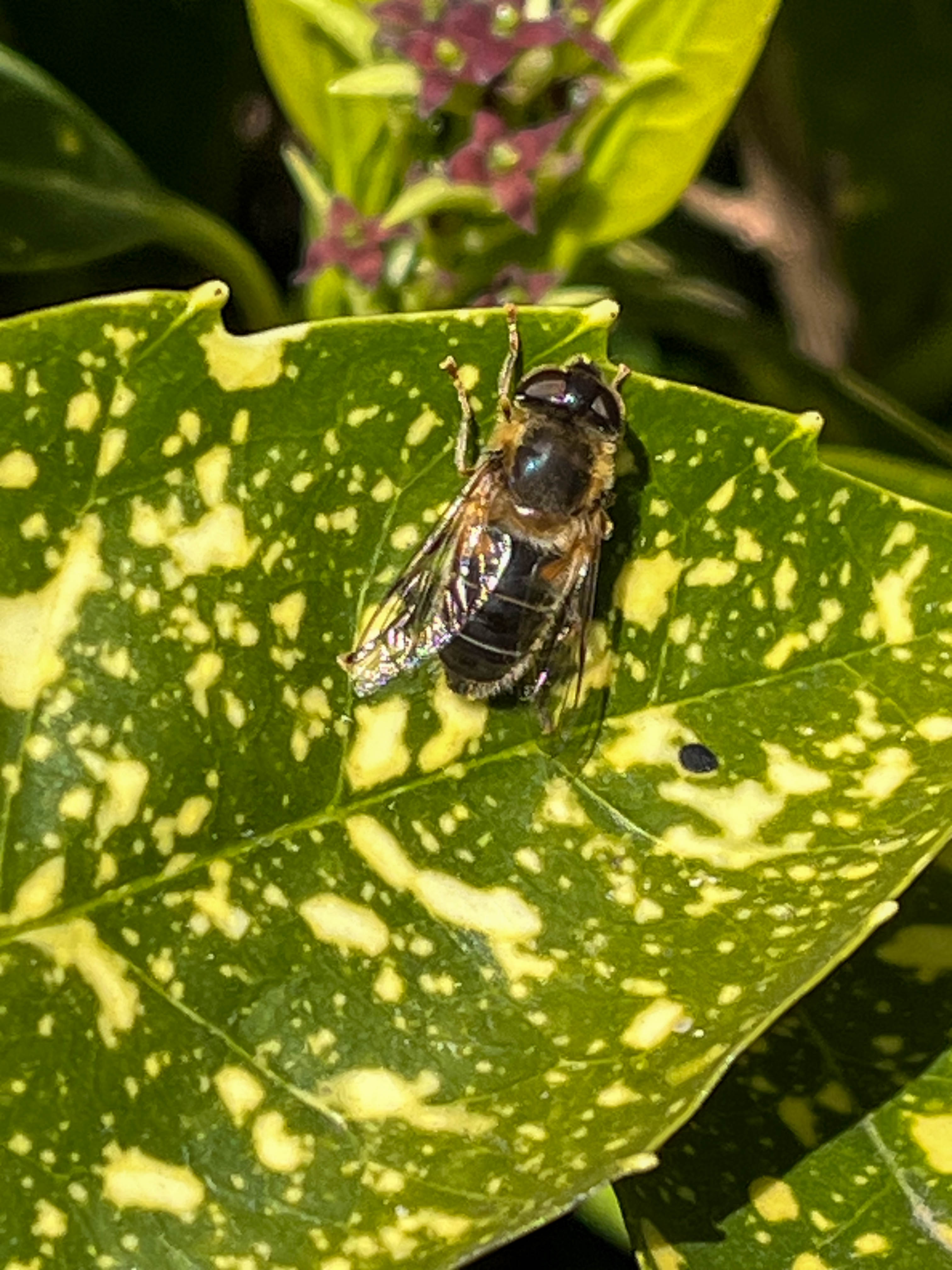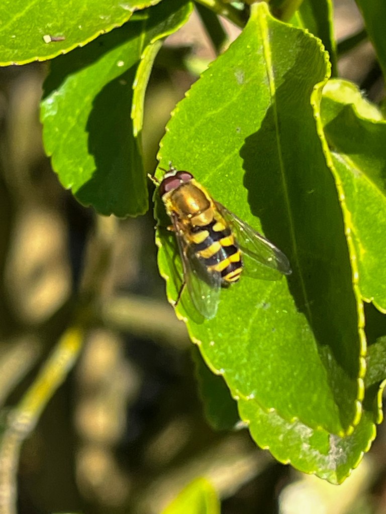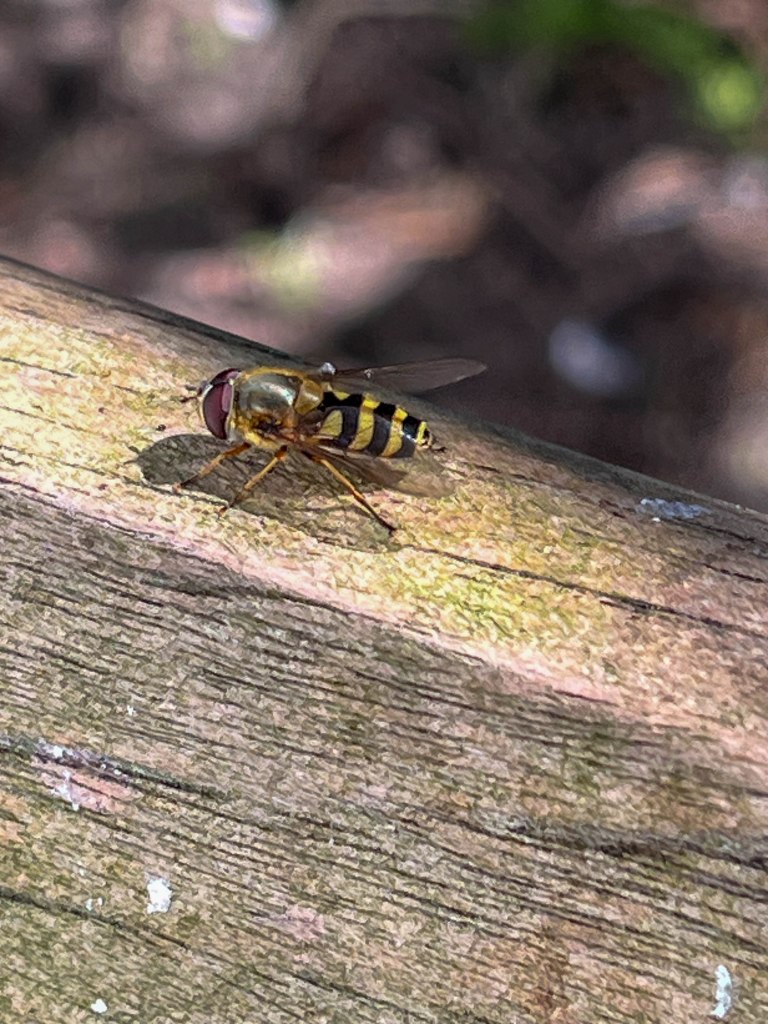 There was plenty of activity in the gardens and I was thrilled to see a freshly emerged male Red Mason Bee. Unfortunately it did not hang around long enough to let me take its picture. Also present in the gardens were a number of Banded Hoverflies plus Chocolate Mining Bee, Tapered Drone flies, Hairy-footed Flower Bee and a Buff-tailed Bumble bee.