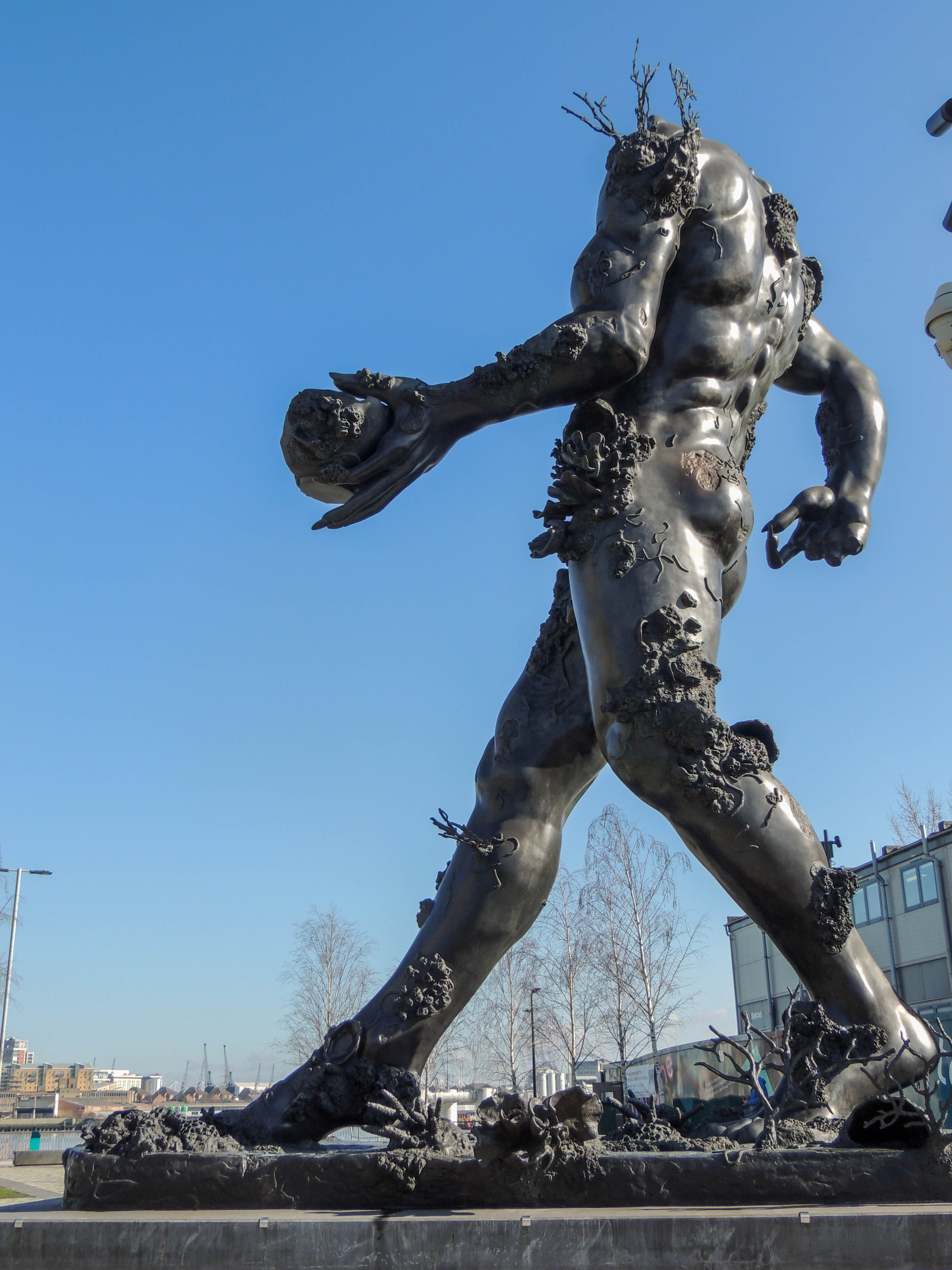 This statue called ‘Demon with Bowl’ is by Damian Hurst.