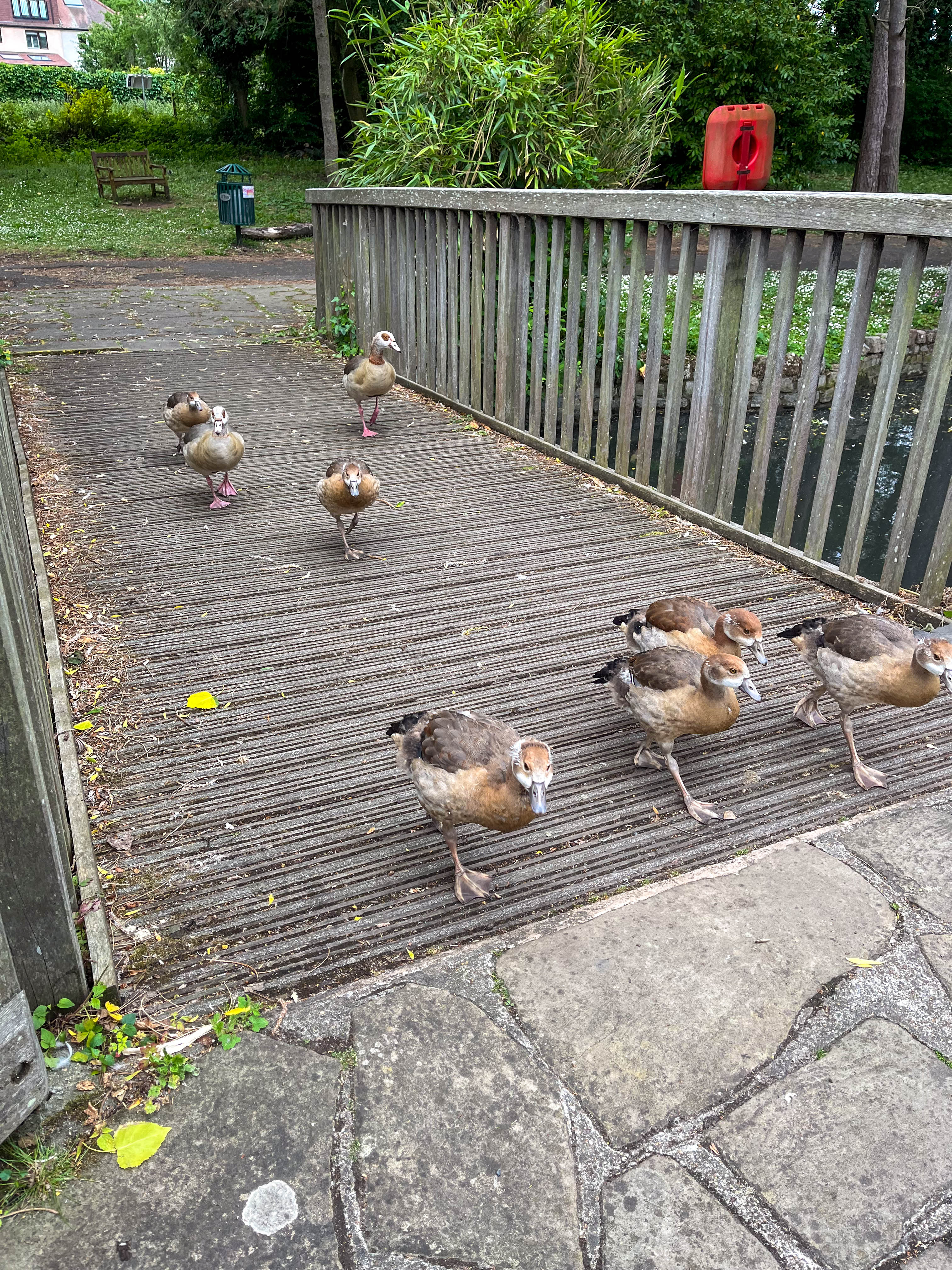 Whilst I was sitting on the bridge this family of Egyptian Geese came by
