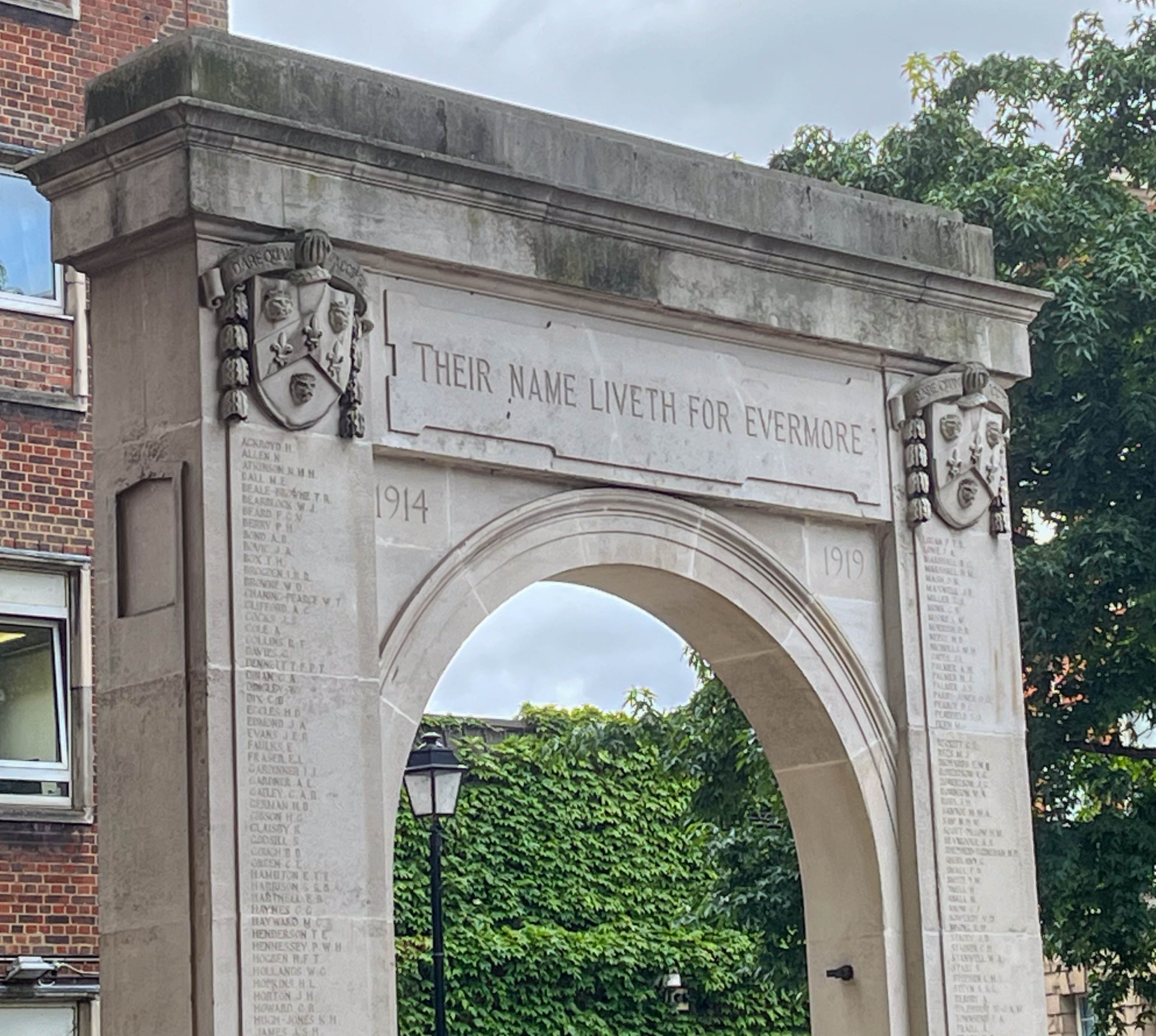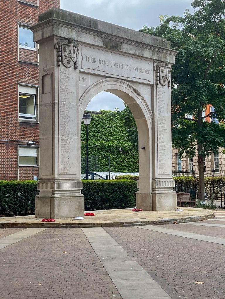 The arch was unveiled by the Duke of York in 1921 as a memorial to the staff and students of Guy’s Hospital who had died in the first World War. Their 131 names are recorded on the south face. Following the second World War an additional 94 names were added on the north face.