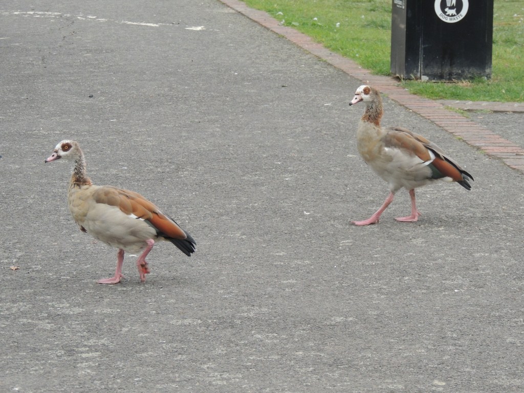 Turning away from the river we entered the park, where we found a large number of Moorhen with a few Coot around the lake. Later we saw 2 Egyptian Geese.