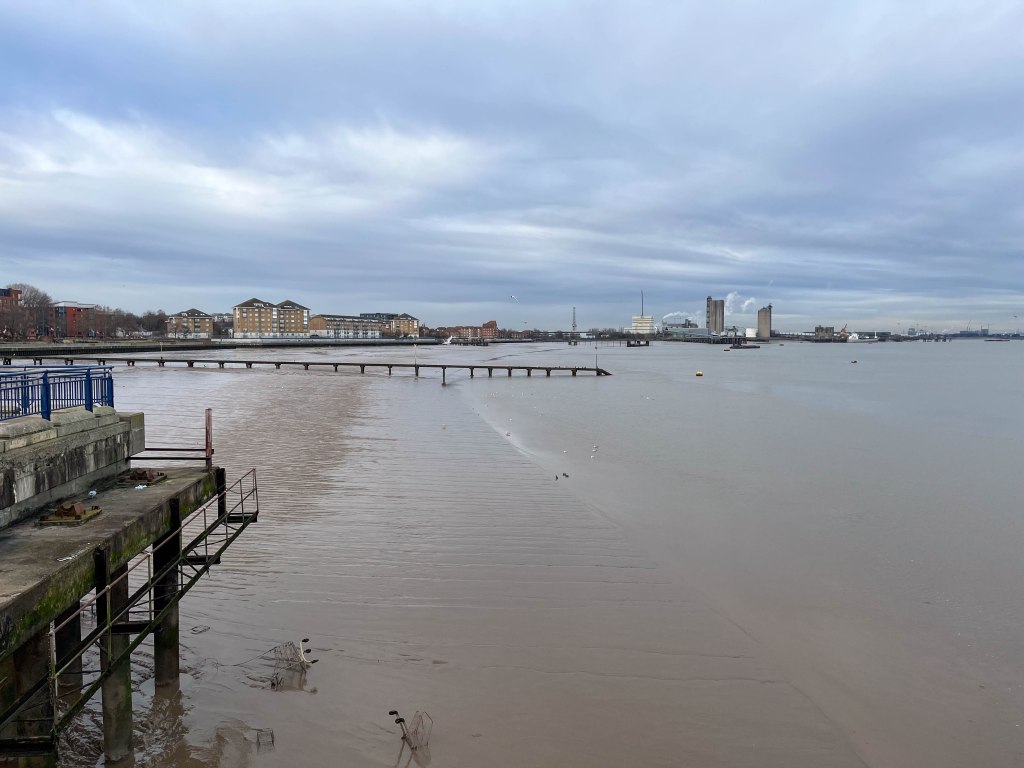 A bright sunny winter morning and a good chance for a walk along the River Thames at Erith. This stretch of river has become famous for its numbers and varieties of gulls, attracted by the large rubbish tip on the Essex side of the river. It also has a large mudflat exposed at low tide which makes it a good site for wintering wading birds.