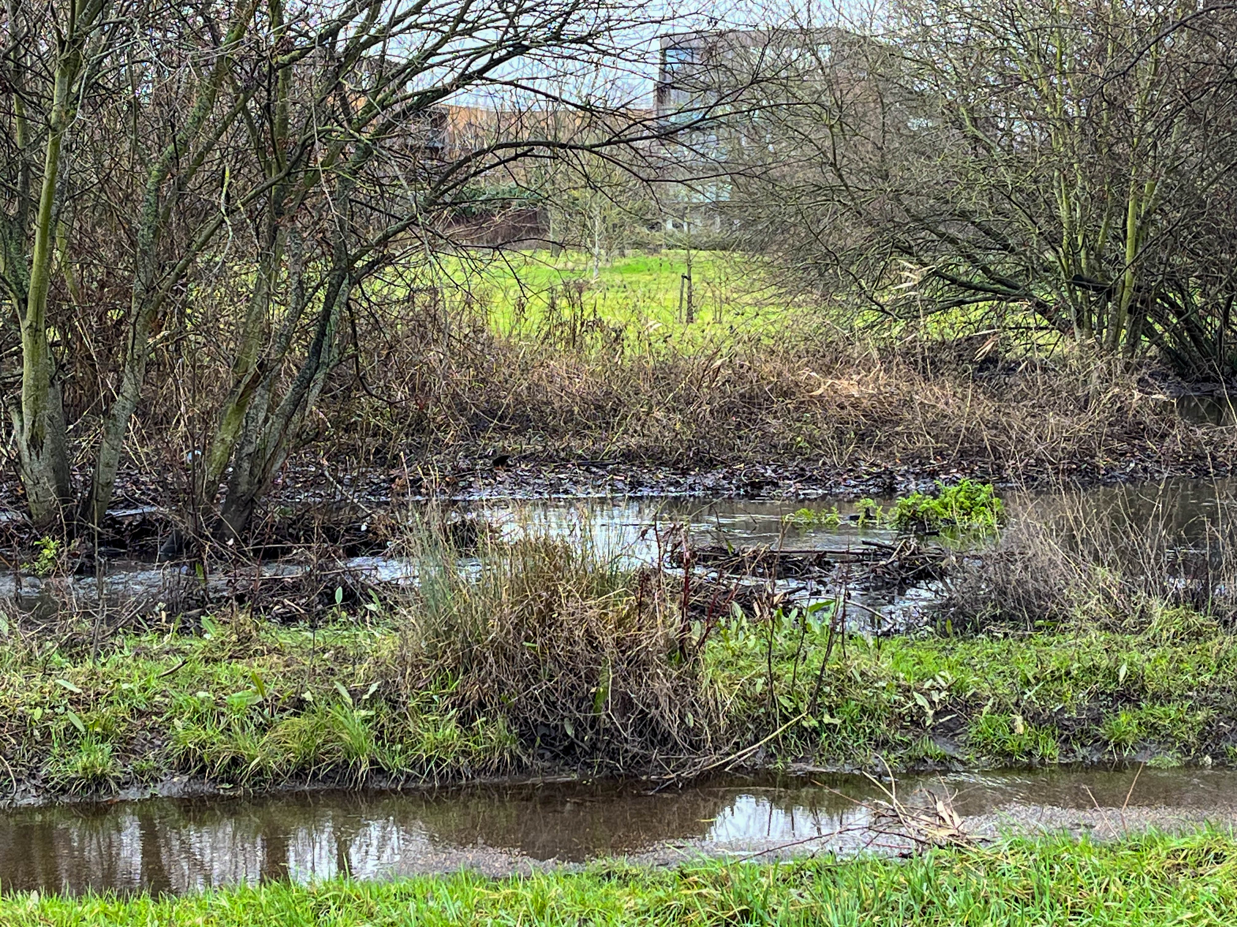 I started at the place where the river emerges from its underground path into the reserve. this can often be a good place for seeing Grey Wagtail, but it was clear that recent rain had caused a significant rise in water levels and so there was little bank to be seen.